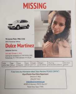 UPDATE ON THE CASE OF MISSING PRAIRIE VIEW WOMAN DULCE MARTINEZ