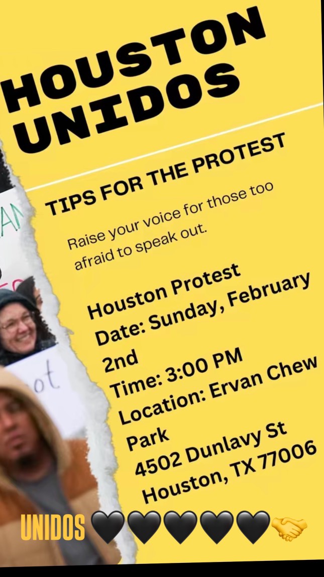 Hi, I’m Stephanie, a proud Latina, business owner, and activist deeply committed to justice and immigrant rights. As someone who has witnessed firsthand the struggles of immigrant families, I refuse to stay silent while our community faces fear, racial profiling, and unjust deportations. This protest isn’t just about policies—it’s about human lives, dignity, and the right to exist without fear. I stand for the families being torn apart, the children growing up in uncertainty, and the countless immigrants who contribute to this country every day. Houston is home to one of the largest immigrant communities in the U.S., and it’s time we make our voices heard. This is our fight. For justice. For dignity. For change.