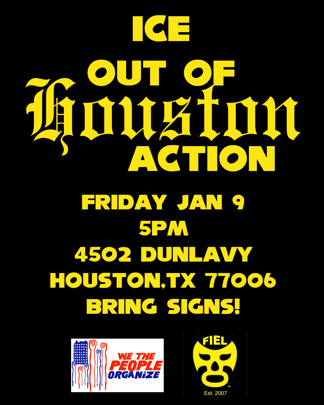 [HOUSTON, TX] On Friday January 9, 2026 beginning at 5pm at 4502 Dunlavy Houston, TX 77006 FIEL Members, community members and community leaders will gather to remind people that having ICE in our communities does not make us safe.